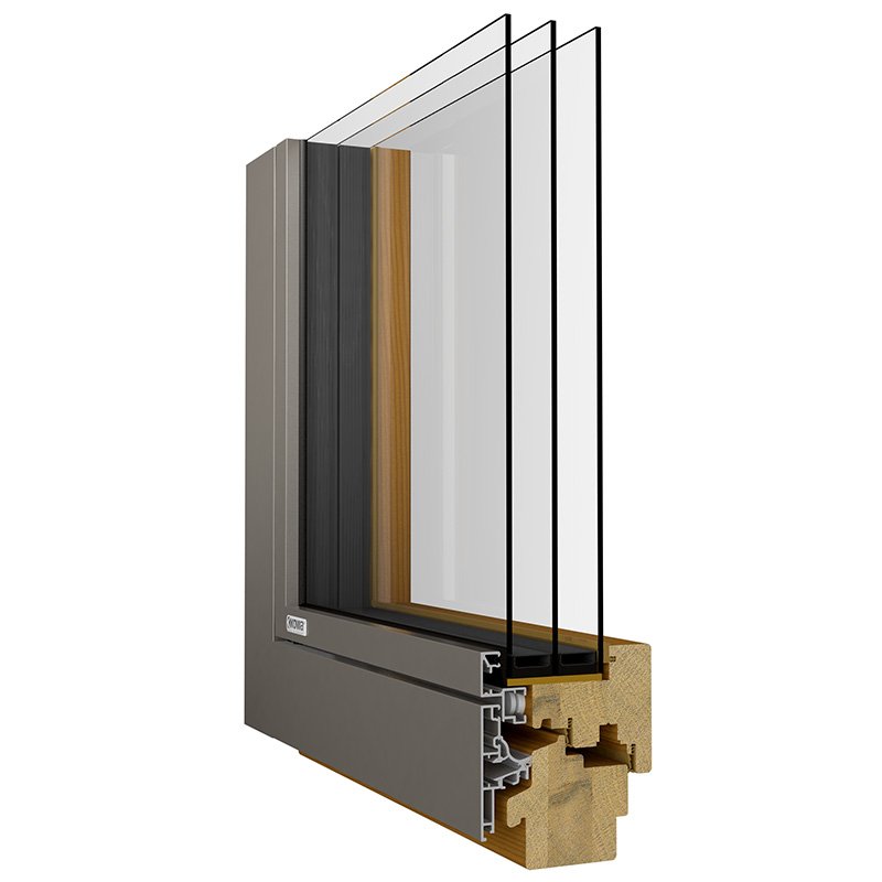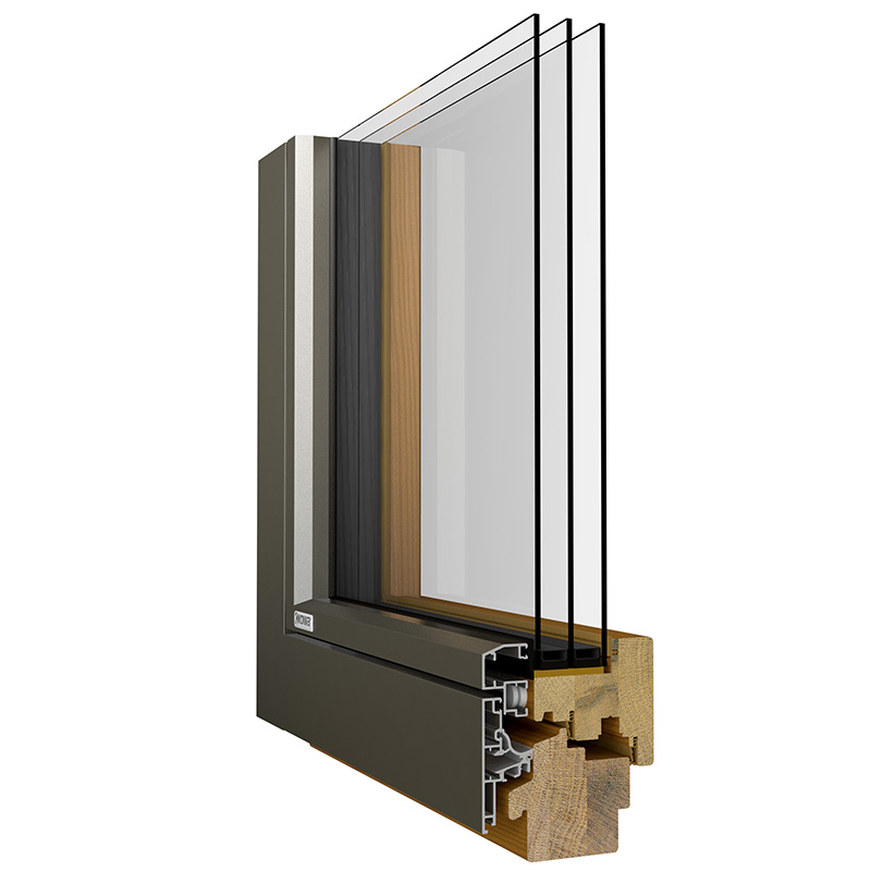 Sie erhalten unsere Holz-Alu-Fenster in zwei Bautiefen mit verschiedenen Gläsern und entsprechenden Wärmedämmwerten.