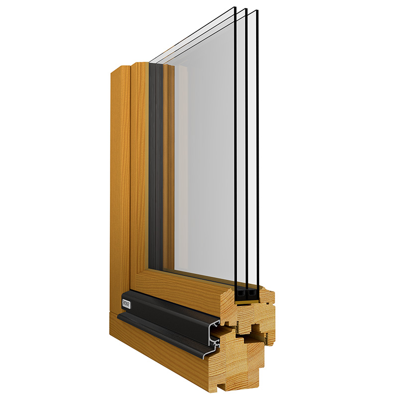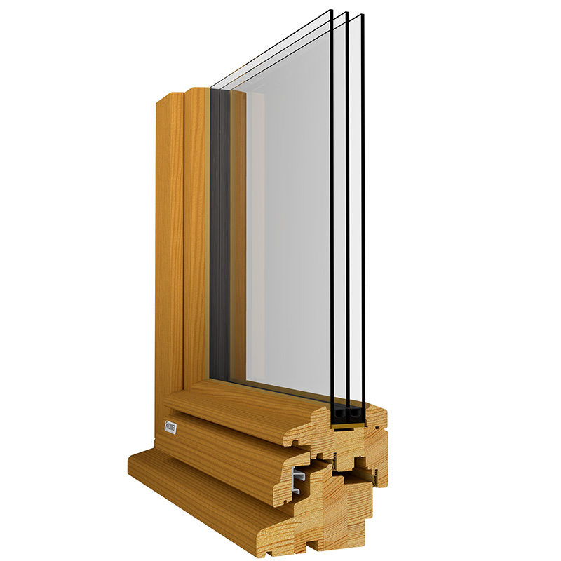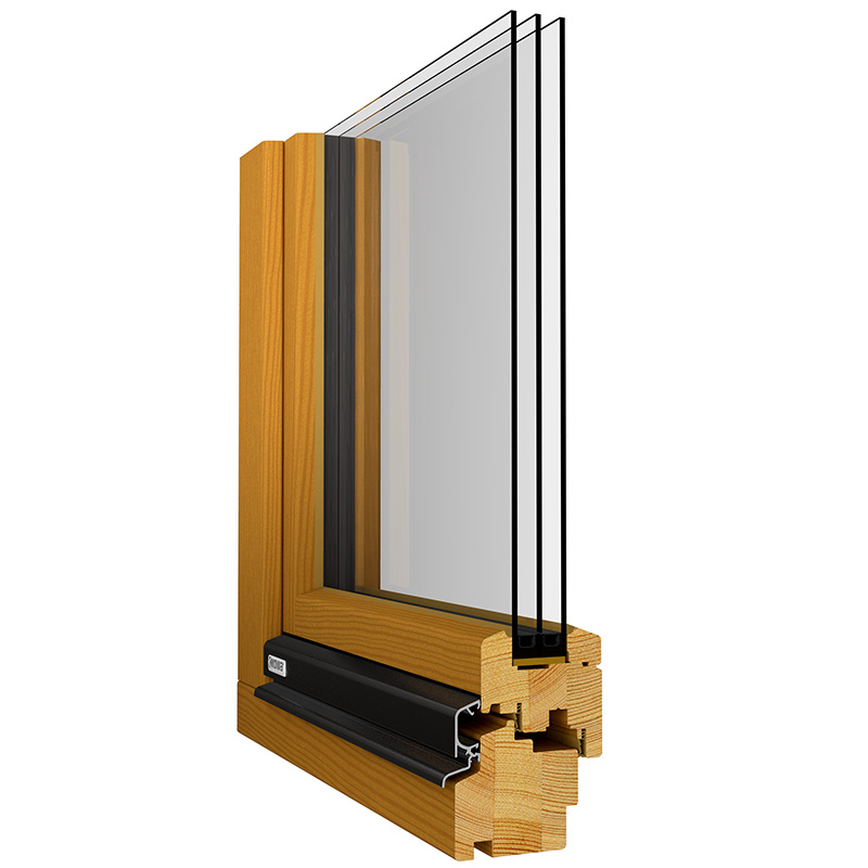 Sie erhalten unsere Holz-Fenstersysteme in drei Standard-Bautiefen mit verschiedenen Gläsern und entsprechenden Wärmedämmwerten.