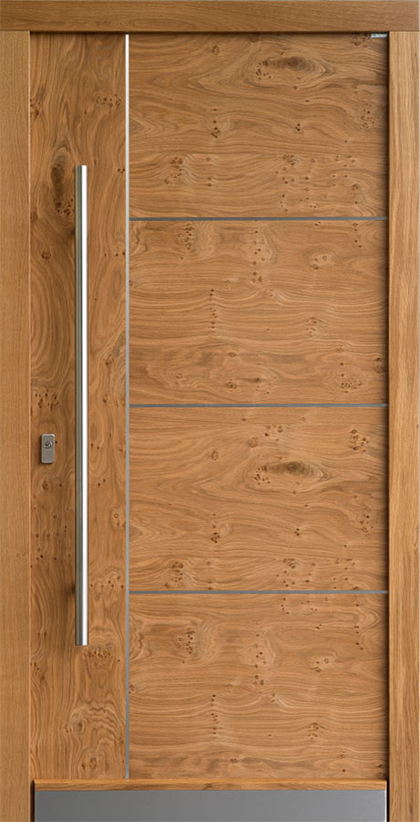 So robust und unverwüstlich die Außenseite ist, so natürlich ist die Raumseite mit dem kreativen Ursprungswerkstoff Holz. Moderne Türen mit stilvollen Details, kraftvollen Elementen und zuverlässiger, präziser Technik schaffen bleibende Werte.